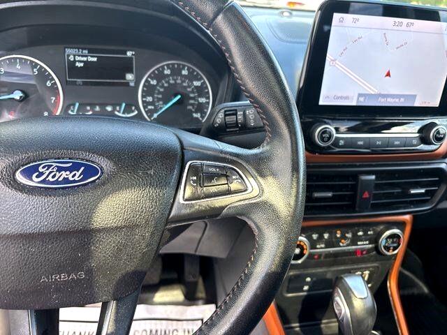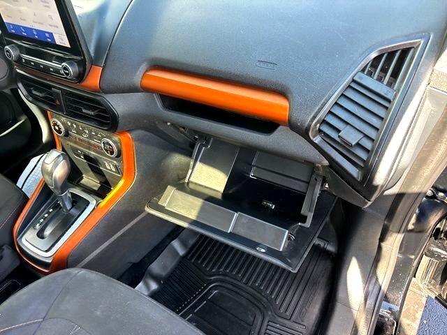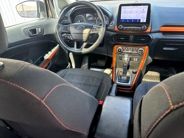As you slip into the comfortable interior, you'll be greeted by the spacious cabin, offering plenty of room for you and your passengers to stretch out and relax. The advanced SYNC 3 system is at your fingertips, ready to keep you connected and entertained with its intuitive touchscreen display and voice-activated technology. Whether you're blasting your favorite tunes through the premium sound system or accessing your favorite apps with ease, the EcoSport has all the tech you need for an enjoyable drive.